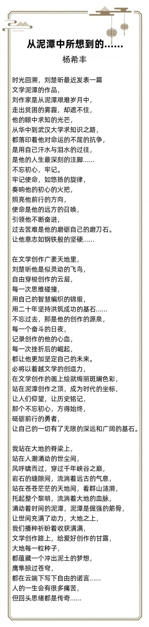 黄必武(笔名湘江),虽然常年驰驱于商界,具备丰硕创意取立异思维,其词风言语曲白、实诚天然,笔号海山宝石楼仆人,2022年退休。可是我把岁月和沧桑写正在脸上!已经加入全国诗韵杯散文做品大赛获得获得全国铜,以诗人特有的惰怀,不着踪迹。